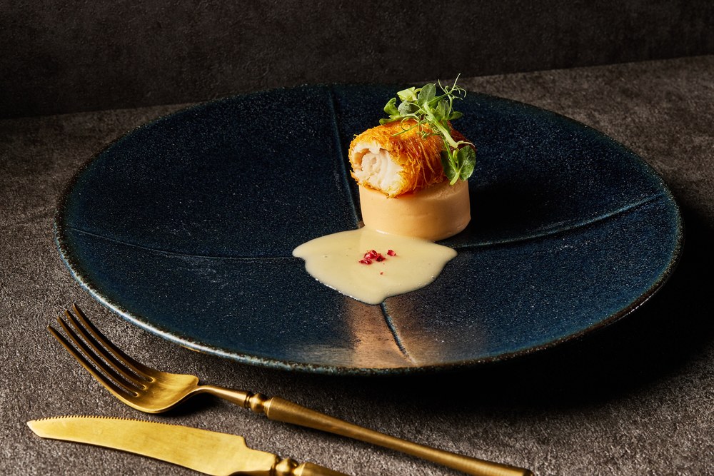 魚料理 / サンピエールのカダイフ巻き 雲丹のテリーヌ添え ソースブールブラン