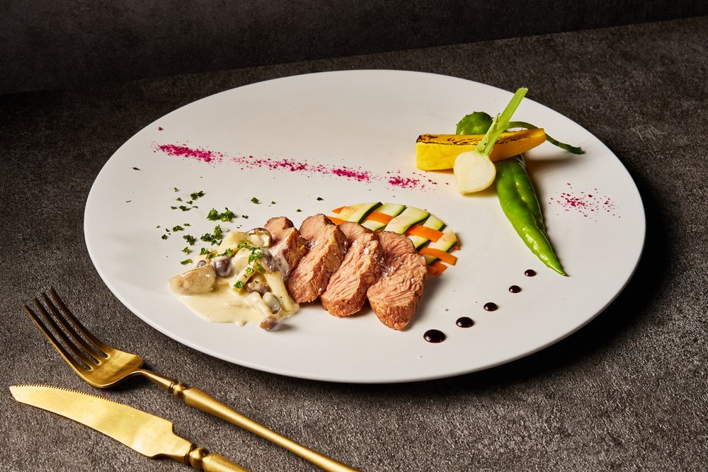 肉料理 / 牛ミスジの低温調理 きのこクリームソースにて