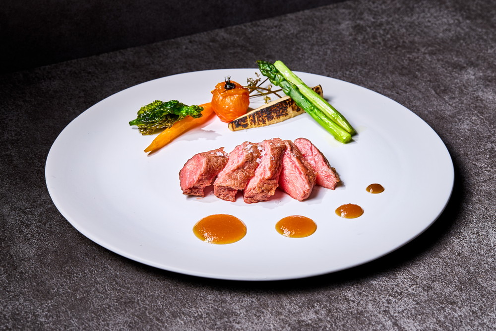 肉料理 / 牛ミスジのステーキ 温野菜添え ソースジャポネーズ