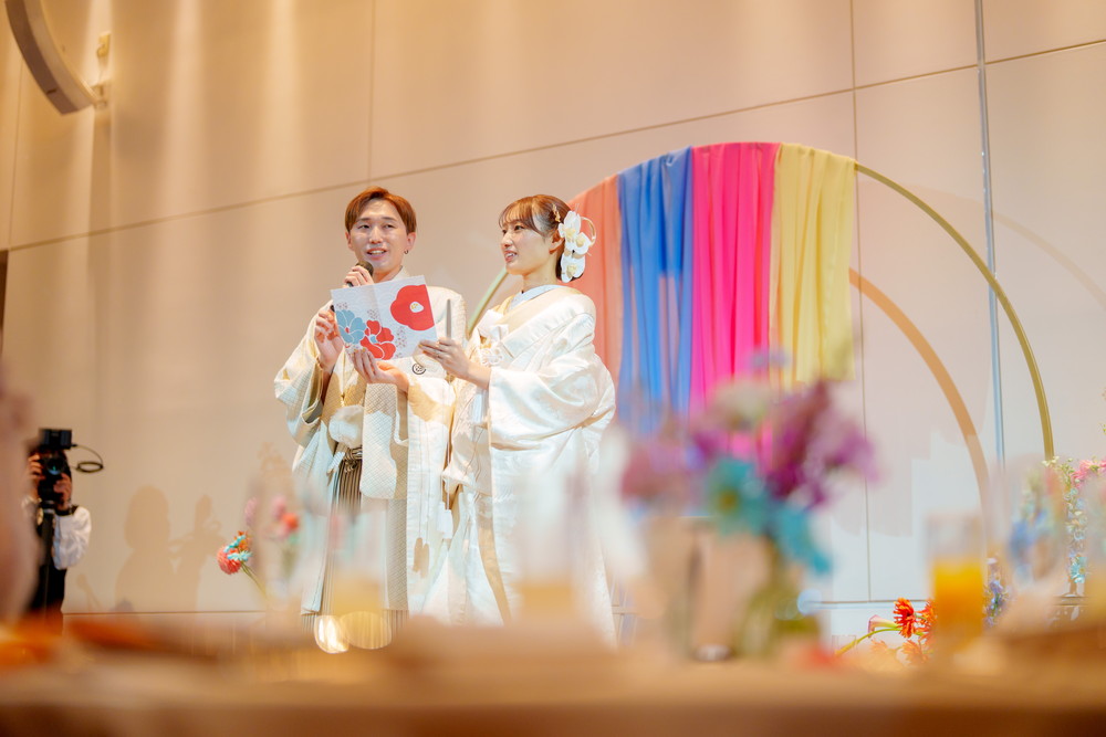 WEDDING REPORT カラフルポップ 2025.10.12 諒様&愛様 挙式会場 / WYN 披露宴会場 / W+ish Wグランラセーレ福山を選んだ理由はどこですか? 料理がとても美味しかったから! 挙式・披露宴でこだわった事はどこですか? カラフルで楽しい披露宴!プラスちょっと感動があるように! 当日印象に残ったシーンはどこですか? 挙式場の窓が開いたとき!