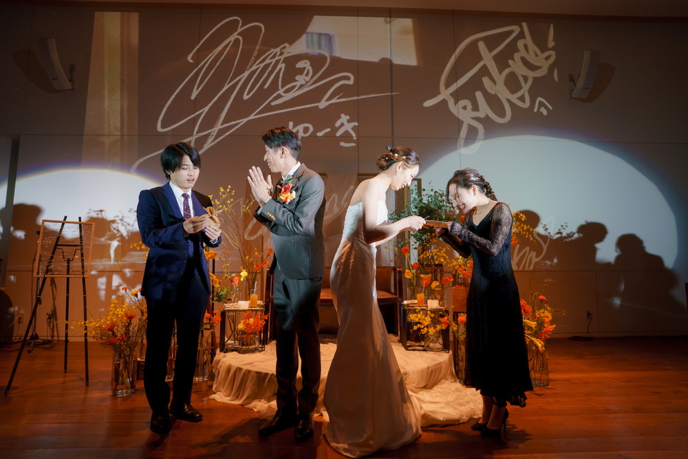 WEDDING REPORT 大好きがいっぱい! 2025.10.25勇真様&佳奈様 挙式会場 / WYN 披露宴会場 / W+ish Wグランラセーレ福山を選んだ理由はどこですか? ウェディングフェスタというイベントがきっかけ! イベントで出会ったスタッフさんに案内をしてもらい ここだと思ったから! 挙式・披露宴でこだわった事はどこですか? 参加型のイベントでみんなを楽しませること! 当日印象に残ったシーンはどこですか? 余興とエンドロール 結婚式を挙げて本当によかったです!