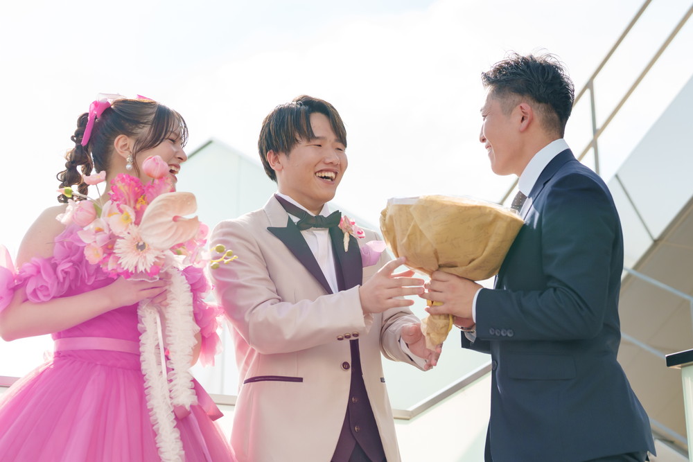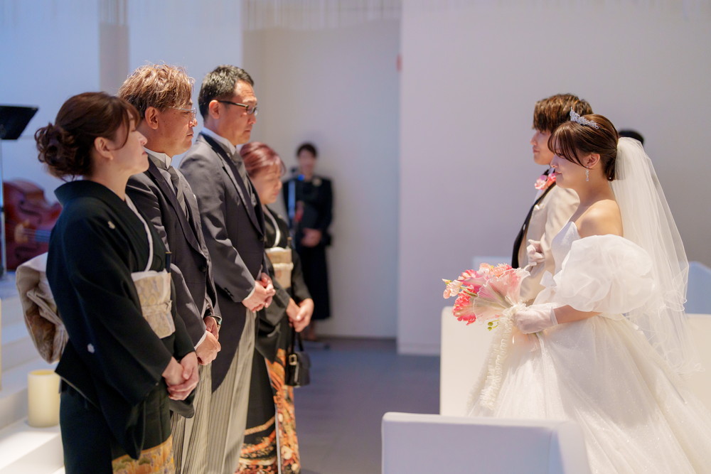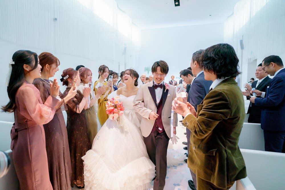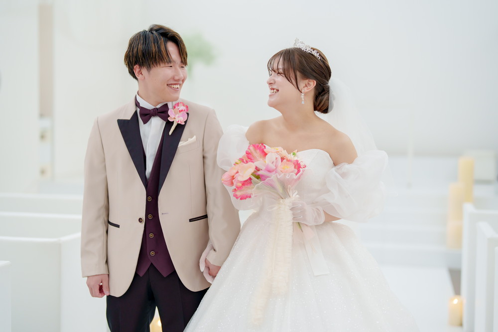 WEDDING REPORT 笑顔が一番! 2025.10.11哲平様&美里様 挙式会場 / WYN 披露宴会場 / W+ish Wグランラセーレ福山を選んだ理由はどこですか? ホワイトチャペルがとても良かった! 見学時に予算の部分もしっかり話ができ良かった! 挙式・披露宴でこだわった事はどこですか? みんなで楽しく! 当日印象に残ったシーンはどこですか? 親へのメッセージムービーの後、親との対面